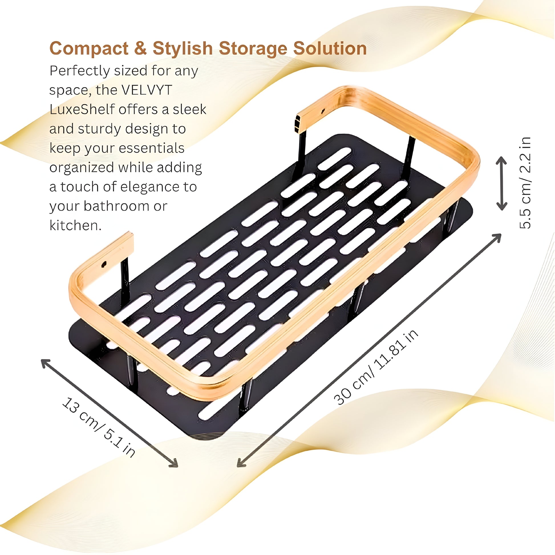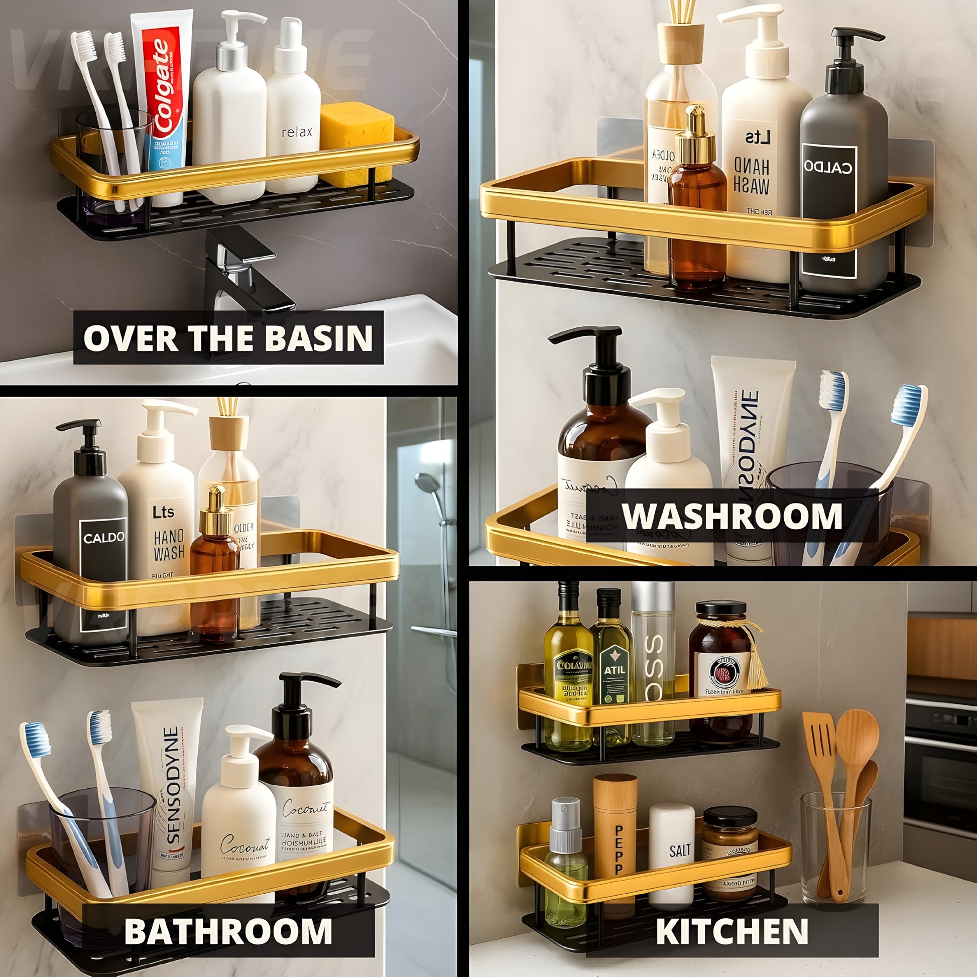Gold & Black Luxury Bathroom Wall Shelf โ No Drill, RustโProof Organiser